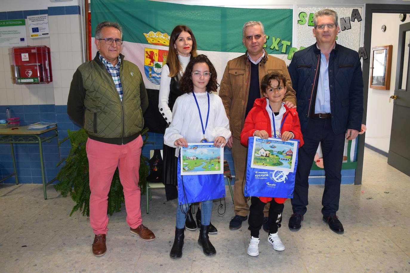 La entrega de los premios a los dos finalistas tuvo lugar en el propio colegio de los pequeños con la presencia del alcalde, Elías López, así como de Fernando Callejo, jefe de servicio de Aqualia en la Mancomunidad de la Serena, y la jefa de Estudios, Ana Rodríguez. Los dos finalistas, acompañados por sus padres, recibieron como reconocimiento una medalla, un diploma y un cheque regalo de 30 euros cada uno para material deportivo.