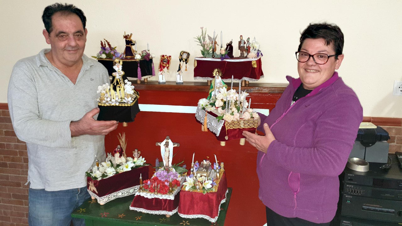 María Gallego crea pasos de Semana Santa de Campanario en miniatura a falta de procesiones
