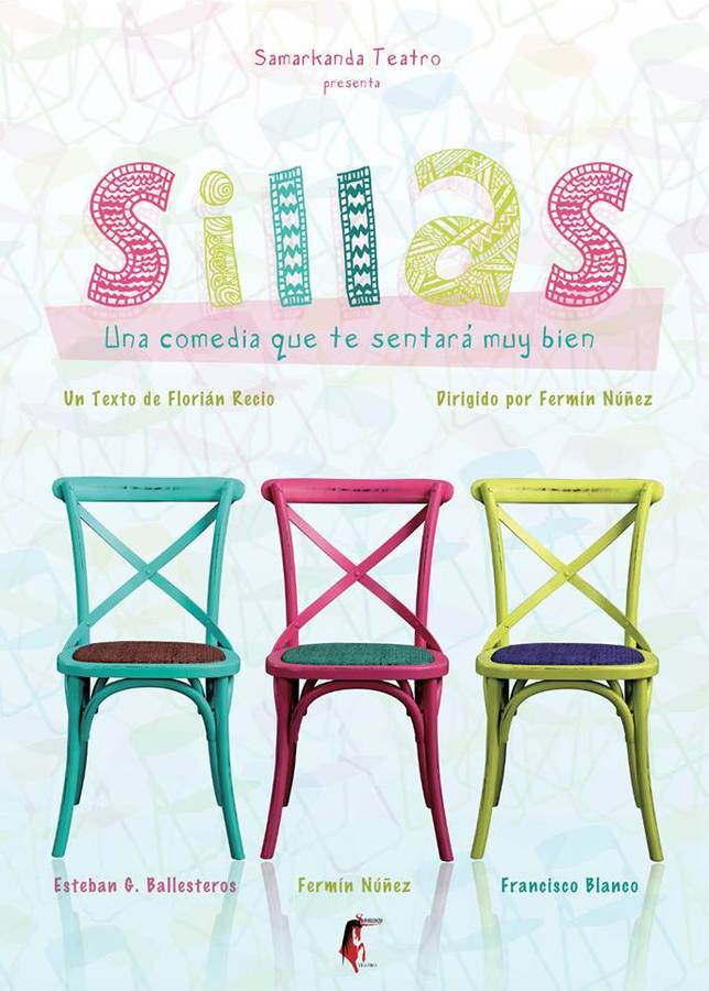 Sillas, es una comedia en la que los personajes son sillas y se les personaliza con situaciones cotidianas que vivimos cada día, pero mirado desde el punto de vista de una silla y dándole un toque de humor con el objetivo de que la gente disfrute. El texto es de Florián Recio.