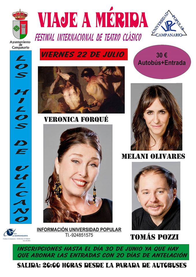 Hasta el próximo 30 de junio está abierto el plazo de inscripción para asistir a la representación de Los hilos de Vulcano, que tendrá lugar el 22 de julio en el teatro romano de Mérida, dentro del Festival Internacional de Teatro Clásico.