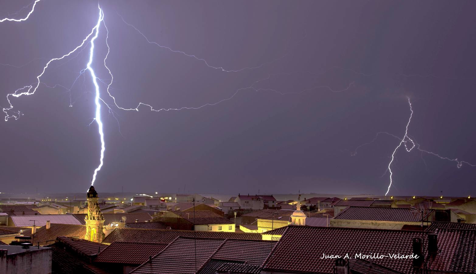 El mes de julio dejó una estampa inusual que hacía mucho tiempo que no sucedía. Y es que Campanario fue escenario el 6 de julio de una tormenta, acompañada de granizo, impropia de estas fechas. Un temporal que trajo viento huracanado, pedrisco y abundante lluvia y que dejó espectaculares rayos en el cielo campanariense.