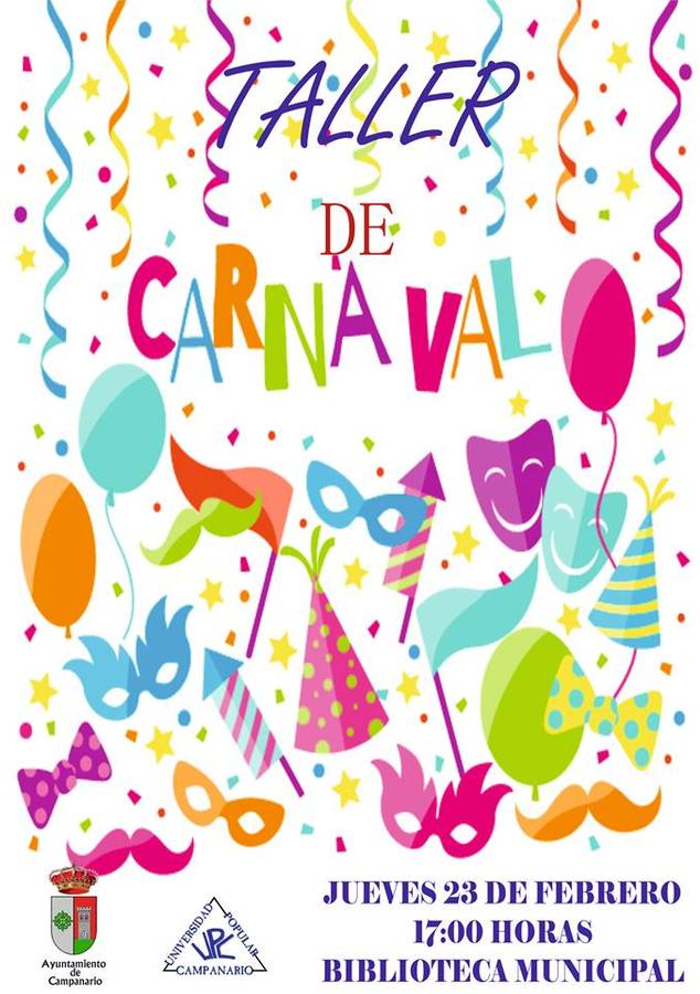 Hoy jueves 23 de febrero, a las 17.00 horas, los más pequeños pueden asistir a un taller de confección de divertidas caretas de carnaval en la Biblioteca Municipal de Campanario.
