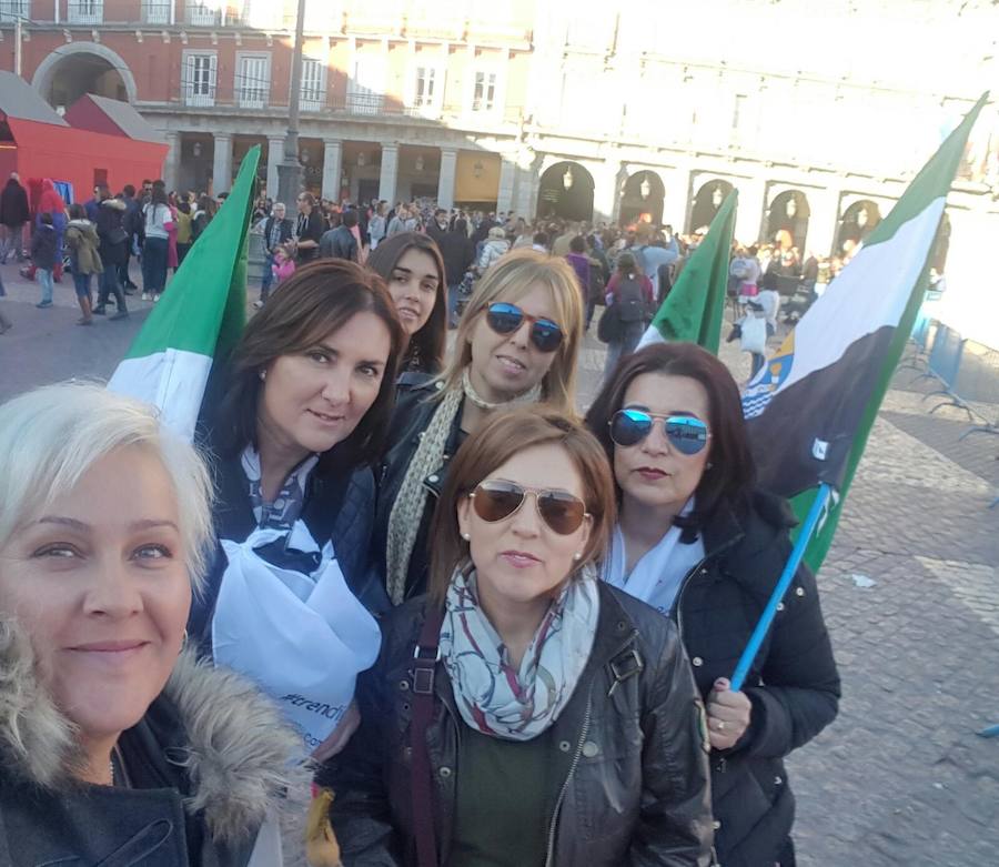 Desde Mérida y en tren -aún a riesgo de llegar tarde- salió ese día hacia Madrid la comitiva institucional formada por todos los integrantes del Pacto por el Ferrocarril (la Junta de Extremadura; los cuatro grupos parlamentarios de la Asamblea; las diputaciones de Cáceres y Badajoz; la Federación Extremeña de Municipios y Provincias de Extremadura; los sindicatos UGT y CCOO; y la Confederación Regional de Empresarios de Extremadura) encabezada por el presidente Guillermo Fernández Vara y distintos representantes del ámbito de la cultura. A ella nos sumamos miles de extremeños llegados prácticamente desde la totalidad de los pueblos de nuestra comunidad. Más de 600 autobuses fletados, entre ellos dos que salieron desde Campanario. Y es que, ¿cómo íbamos a faltar nosotros a un evento así? Si en 1866 fuimos capaces de descolgar las campanas de la iglesia del pueblo y llevarlas a hombros hasta la estación (que está a 2,5 kilómetros) para hacerlas tocar a la llegada del tren inaugural de la línea, ¿qué era para nosotros dar un paseo a Madrid? Y allí estuvimos, junto al resto de nuestros paisanos, pacenses y cacereños, todos a una, por nuestro tren.