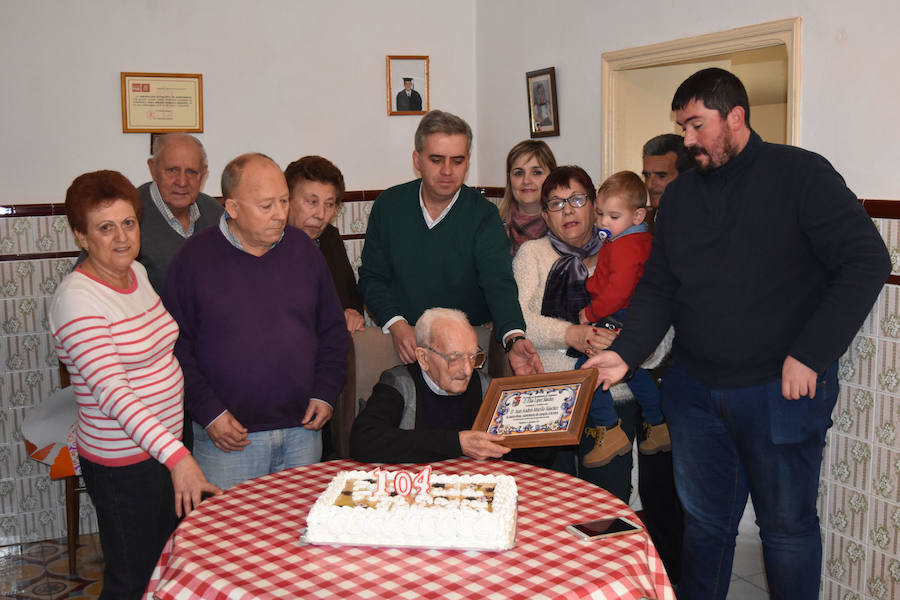 El primer edil obsequió a Juan Andrés Murillo Sánchez con una placa conmemorativa de su 104 cumpleaños, al tiempo que también le llevaron una tarta.